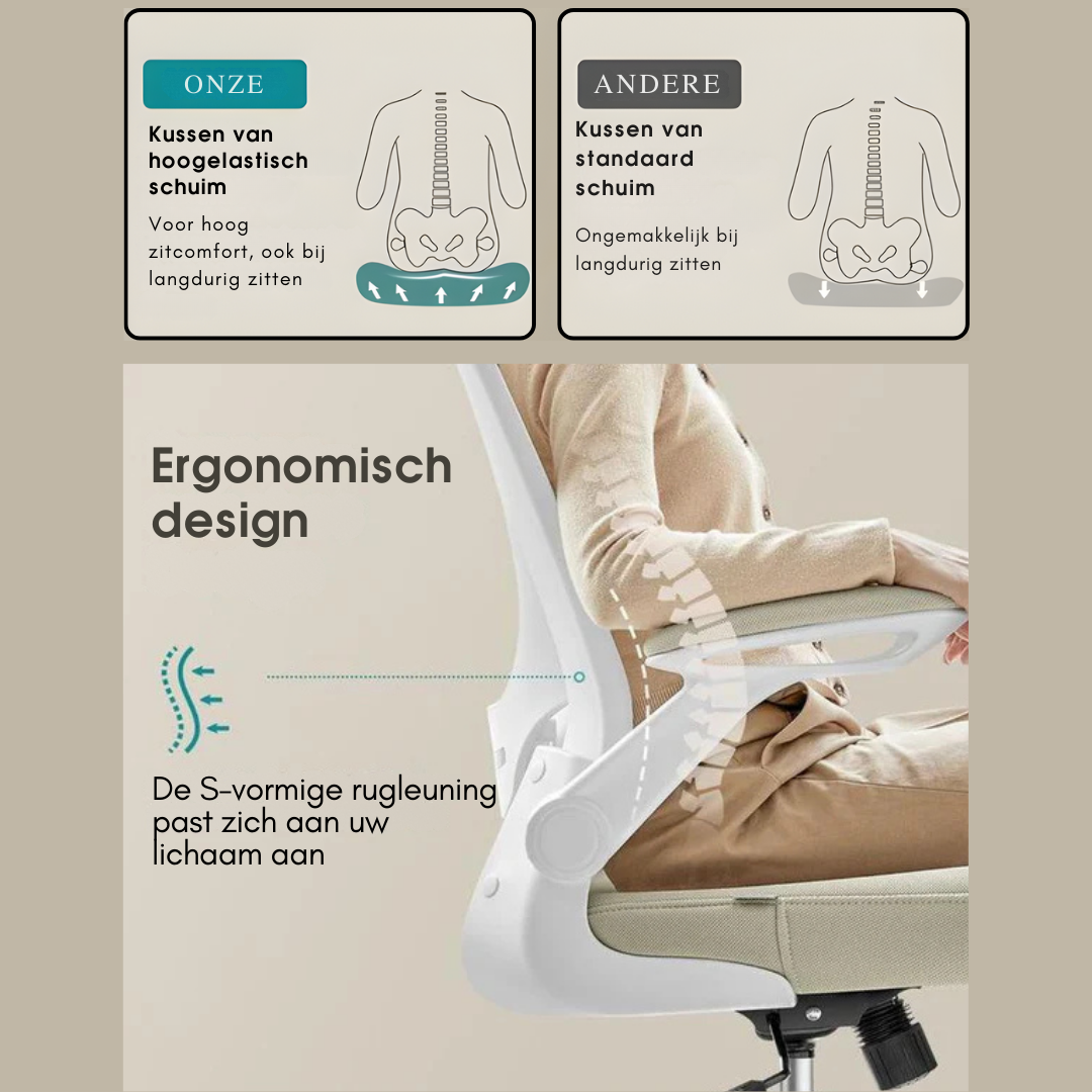 Mesh rugleuning: De rugleuning is gemaakt van mesh en heeft een S-vormige curve.