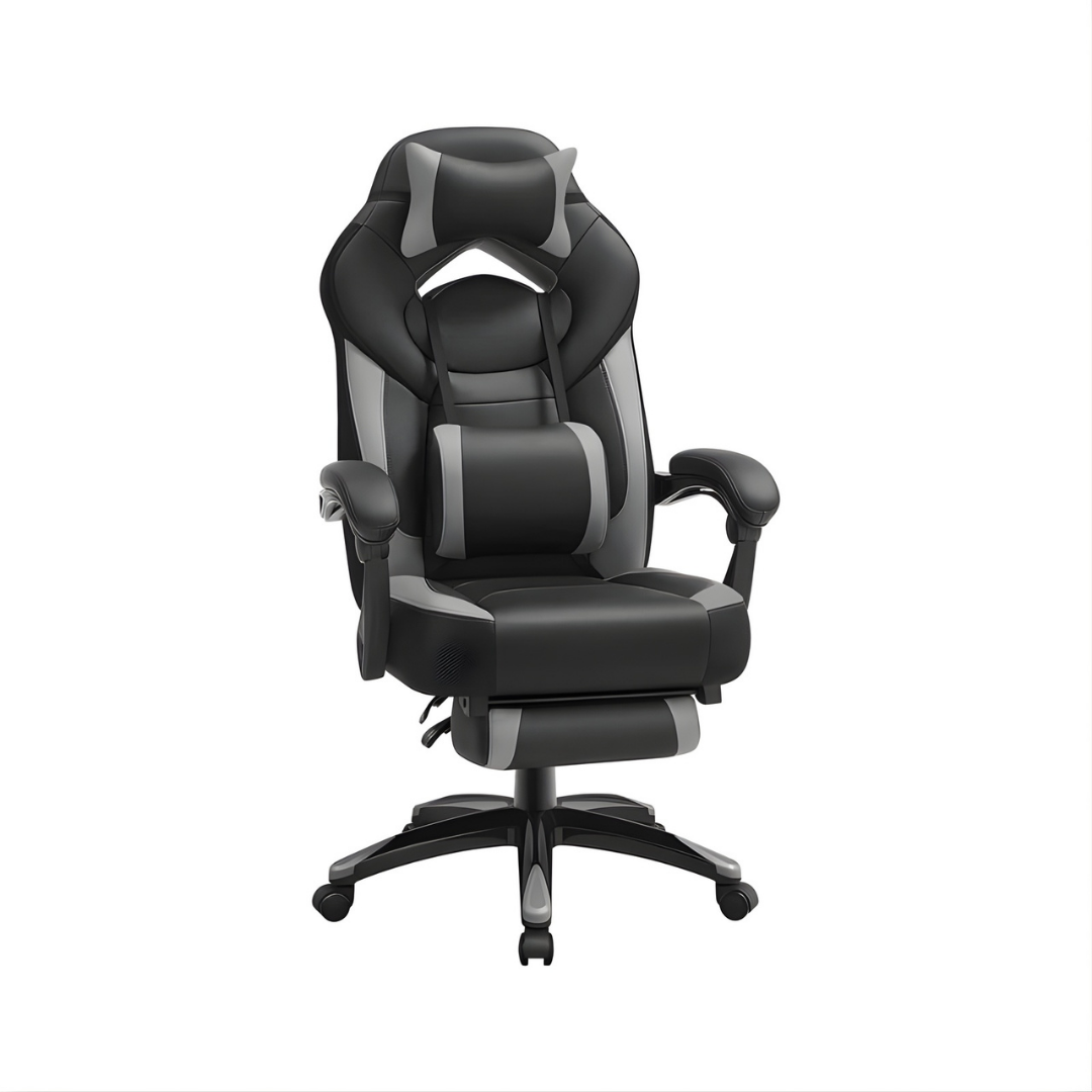 Rugleuning en hoofdsteun: De stoel heeft een hoge rugleuning met een verwijderbaar kussen voor het hoofd aan de bovenkant. De rugleuning is verstelbaar en kan naar verschillende hoeken worden gekanteld.